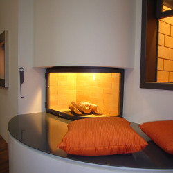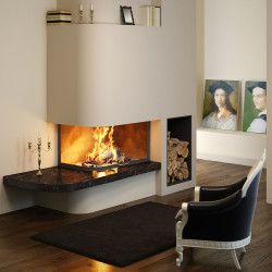 Šie kamīni ir aprīkoti ar ekskluzīvu, lielisku "in vitro" keramikas stiklu un apvieno slaidus izliekumus ar stūra kamīna "uguns stūra" raksturu.