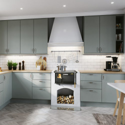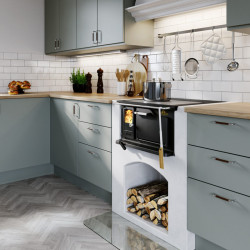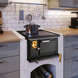 Šīm malkas plītīm ir stikla kurtuves durvis, kas sniedz ieskatu brīnišķīgajā uguns mirdzumā. Vinām ir liela cepeškrāsns kas pārklāta ar 15 mm ziepjakmens plāksni, lai nodrošinātu vienmērīgāku cepeškrāsns temperatūru un ilgāku siltuma saglabāšanu. Ievietojiet ziepjakmens komplektu plītī, un tas visu nakti izplatīs siltumu pa visu māju!