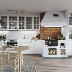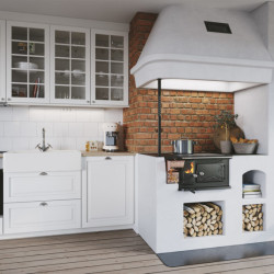 Šīm malkas plītīm ir stikla kurtuves durvis, kas sniedz ieskatu brīnišķīgajā uguns mirdzumā. Vinām ir liela cepeškrāsns kas pārklāta ar 15 mm ziepjakmens plāksni, lai nodrošinātu vienmērīgāku cepeškrāsns temperatūru un ilgāku siltuma saglabāšanu. Ievietojiet ziepjakmens komplektu plītī, un tas visu nakti izplatīs siltumu pa visu māju!